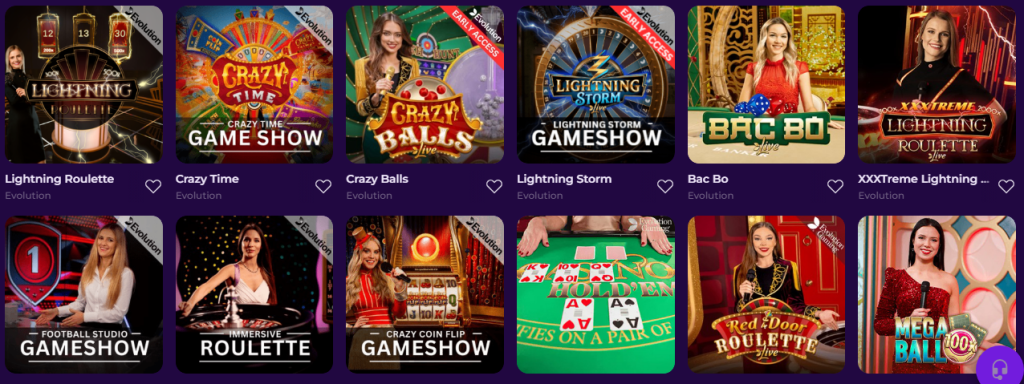 - Casino en vivo: ruleta, blackjack, baccarat y game shows de Evolution y Pragmatic Play.