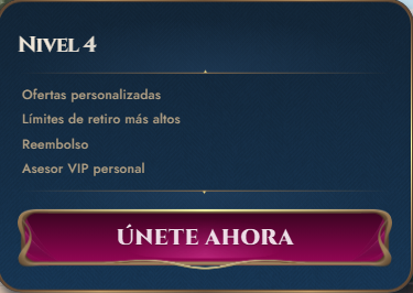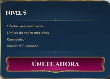 | Nivel 5 | Nivel élite con todas las ventajas: ofertas exclusivas, límites máximos, reembolso premium y gestor VIP dedicado. |