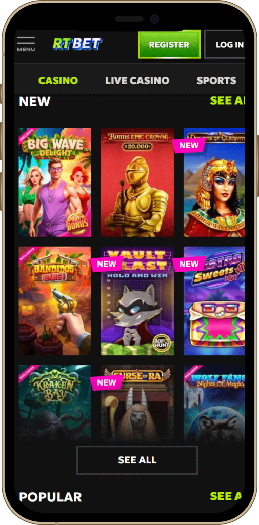 RTBet Casino cuenta con una extensa selección de juegos desarrollados por proveedores reconocidos del sector, diseñada para satisfacer tanto a los jugadores casuales como a los más experimentados. Su catálogo incluye desde tragamonedas clásicas hasta títulos en vivo con crupieres reales, garantizando entretenimiento variado y seguro en todo momento.